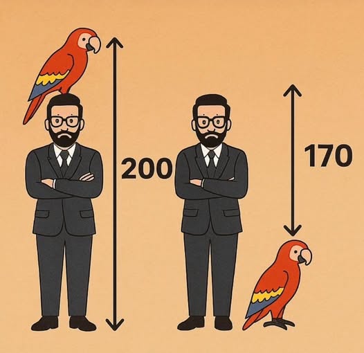 Zdanlivo jednoduchý obrázok v sebe skrýva matematickú hádanku. Dokážeš vypočítať, akú výšku má papagáj?