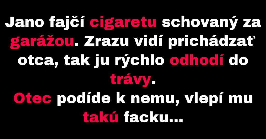 Vtip o tom, ako otec pristihne syna s cigaretou za garážou.